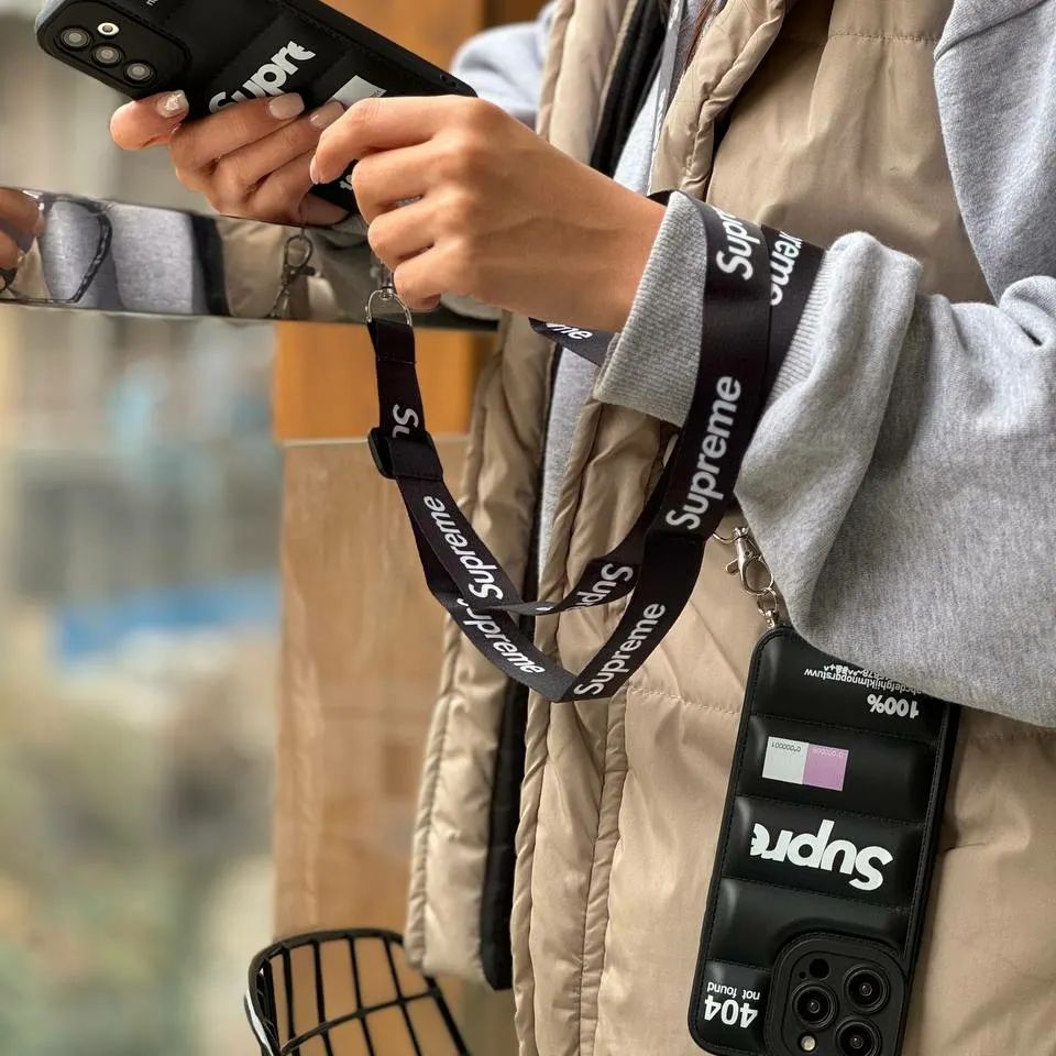 قاب پافر superme با بند دوقلاب بلند آیفون سامسونگ