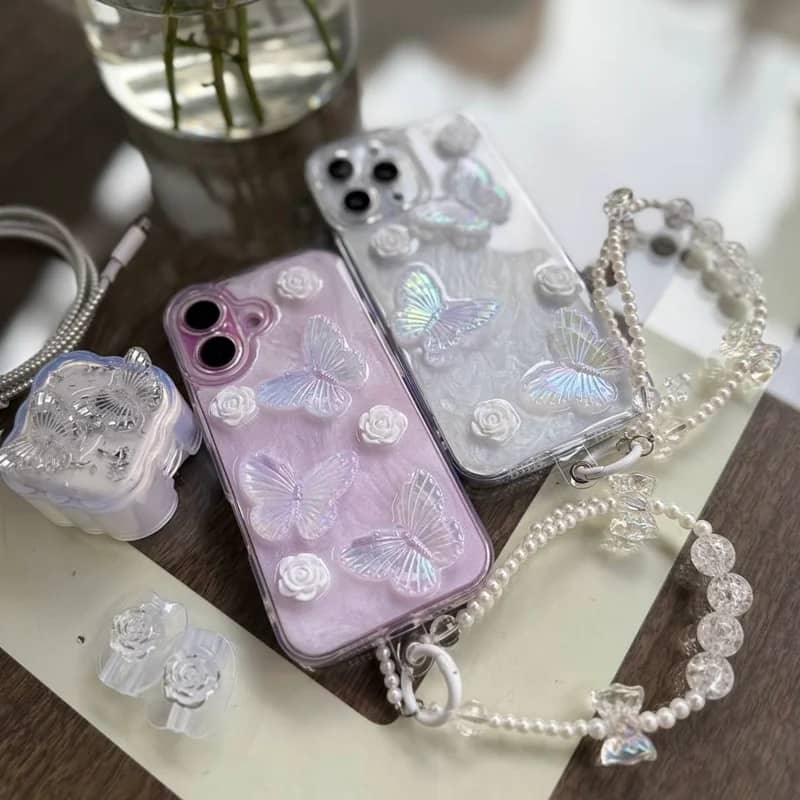 قاب شفاف سه پروانه همراه با آویز آیفون