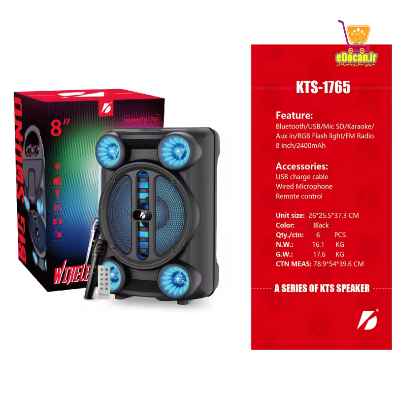 اسپیکر بلوتوثی چمدانی 8 اینچ قابل حمل مدل KTS-1765