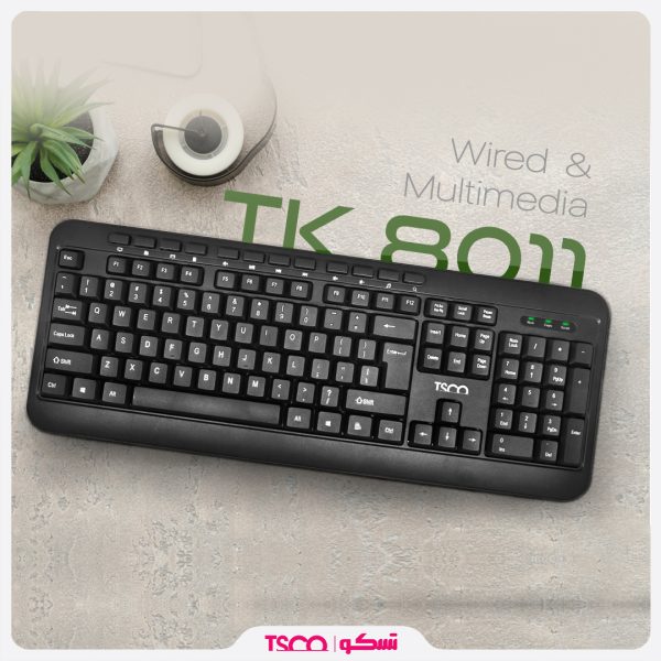 کیبورد تسکو مدل TK 8011 محصولي از شرکت «تسکو» است که از بدنهاي با جنس پلاستيک با کيفيت ساخته شده است. اين صفحه کليد از طريق درگاه USB به رايانه شما متصل ميشود. صفحه کليد TK8011 شرکت تسکو از 104 کليد بسيار نرم بهره ميبرد